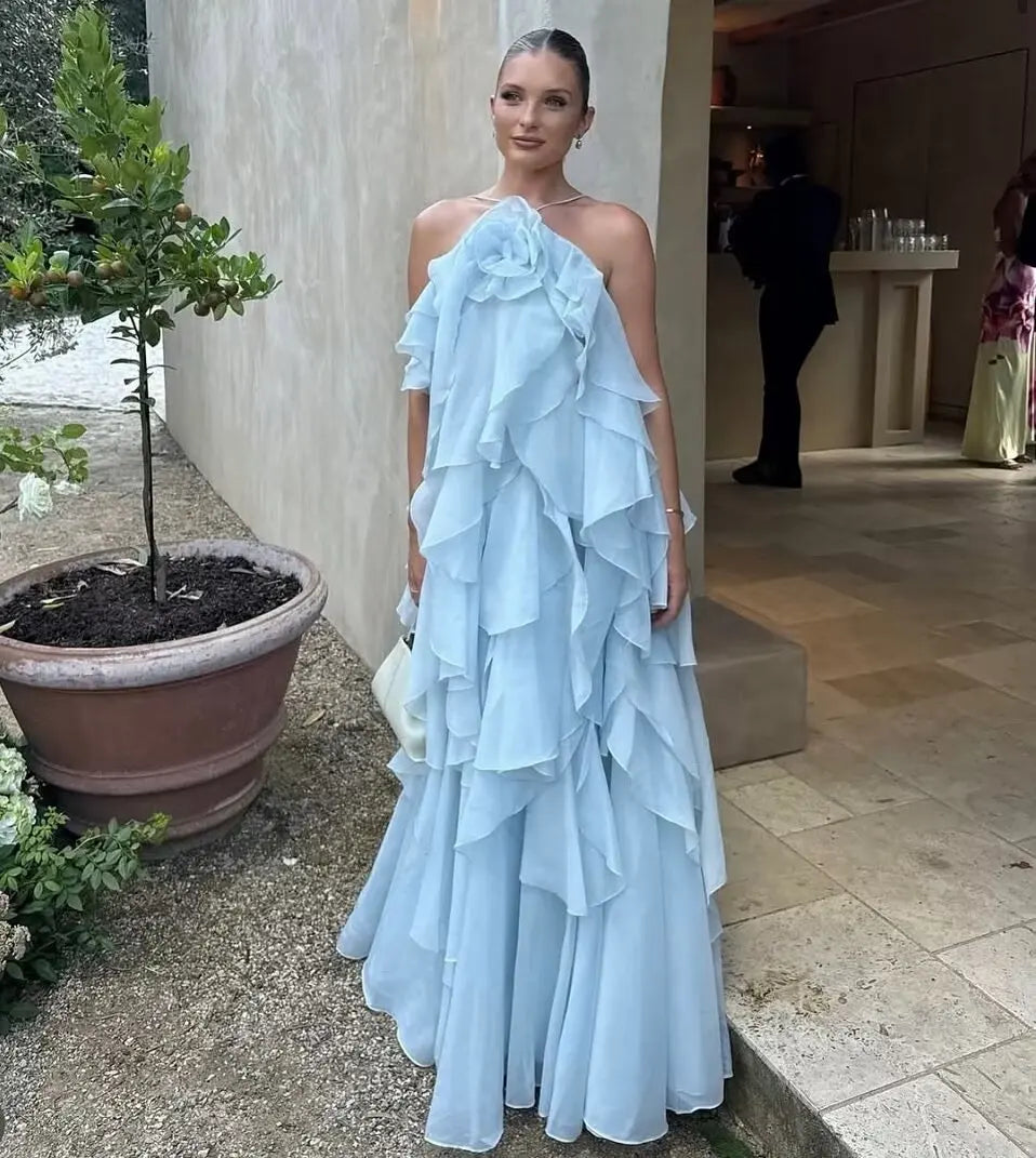 flower layered ruffled suspender dress